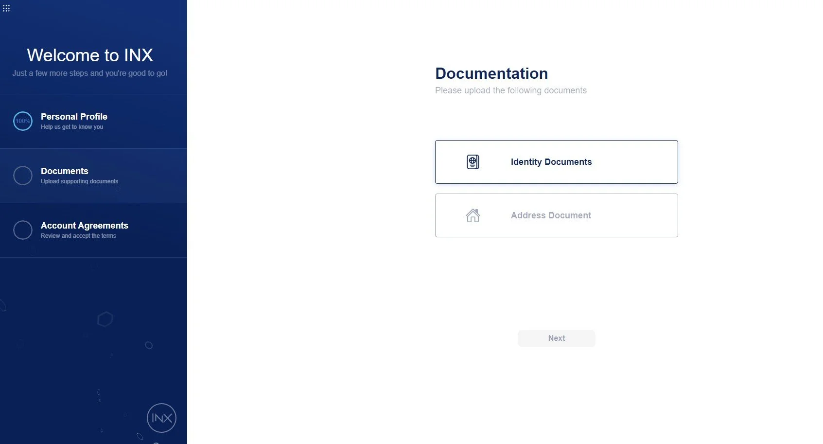 Proceed with setting up your account in the onboarding portal, by completing the Personal Profile section and uploading supporting documents in the Documents section. This is where you will also submit your documents for accreditation.